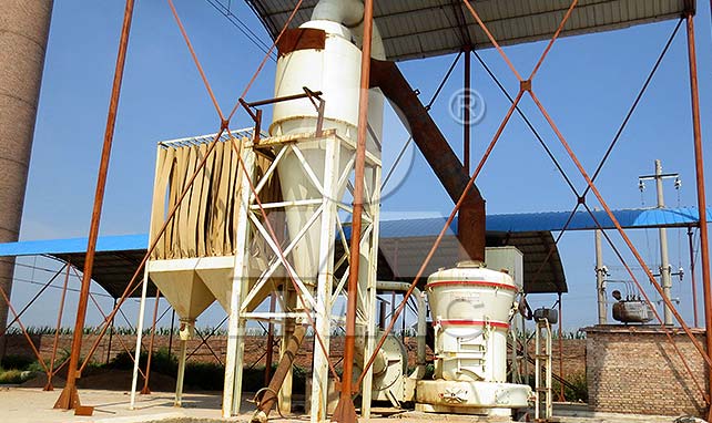破碎后的小塊膨潤土經(jīng)提升機送至料倉,再經(jīng)振動給料機將其均勻定量的送入磨機研磨室內(nèi)進行研磨。