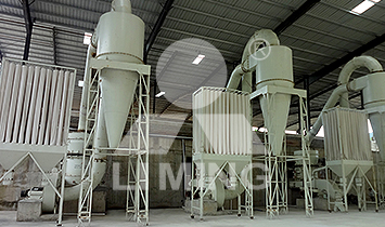破碎后的滑石小塊物料經提升機送至料倉,再經振動給料機將其均勻定量的送入磨機研磨室內進行研磨。