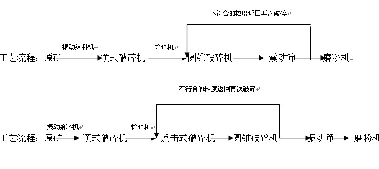 磷灰石粉碎要分為三級或者四級粉碎。分別是粗碎、細(xì)碎、制粉。磷礦粉加工的一般工藝為:磷礦石原礦由振動給料機輸送到顎式破碎機中進(jìn)行粗碎,之后輸送到圓錐破碎機進(jìn)行細(xì)碎整形,根據(jù)需要可添加反擊式破碎機,然后經(jīng)振動篩篩分,符合磨粉機細(xì)度的輸送到磨粉機進(jìn)行磨粉制粉,將不符合磨粉機進(jìn)料要求的磷灰石重新返回到圓錐破碎機進(jìn)行再次破碎,之后篩分輸送到磨粉機內(nèi)制粉,整條工藝成閉路循環(huán)模式,出粉率高達(dá)90%以上。制粉設(shè)備可采用雷蒙磨、超細(xì)磨以及三環(huán)中速微粉磨等常見的磨粉設(shè)備進(jìn)行加工,成品即可直接應(yīng)用到各個領(lǐng)域當(dāng)中。