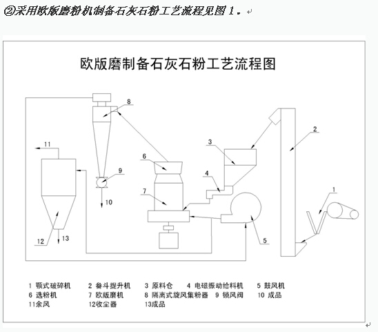 經破碎后的石灰石由庫底調速皮帶秤計量配料后,由皮帶輸送機喂入立磨進行粉磨,成品為細度250目石灰石粉。粉磨后的石灰石粉經輸送機送入成品庫儲存。儲庫庫頂設有單機收塵器除塵。