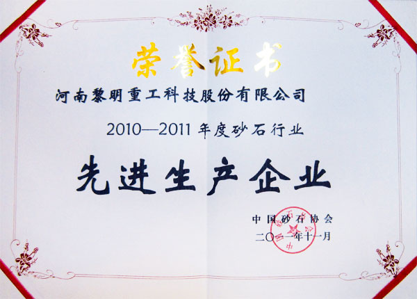 2011年11月12日,在京召開的“中國砂石協會成立三十周年座談會”圓滿落幕。黎明重工捷報頻傳,被授予砂石行業“先進生產企業”、“企業信用等級”2A級頭銜,研發中心總工程師和運營中心經理因積極推動行業發展被授予“優秀工作者”稱號。