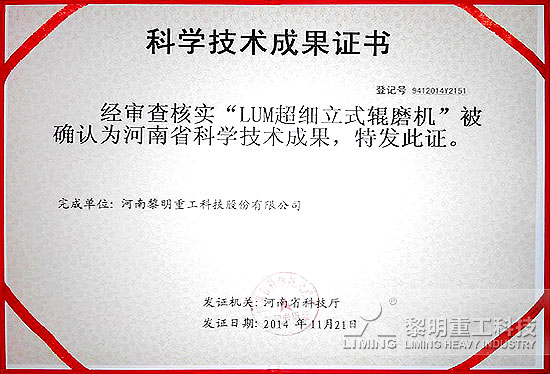 黎明重工 > 新聞中心 > 集團新聞 > 展前捷報:HPT液壓圓錐破、LUM超細立磨榮獲科學技術成果證書