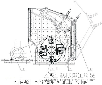 歐版反擊式破碎機利用沖擊能來破碎物料。當物料進入板錘作用區時,受到板錘的高速沖擊而破碎,并被拋向安裝在轉子上方的反擊裝置上再次破碎,然后又從反擊襯板上彈回到板錘作用區重新破碎。此過程重復進行,直到物料被破碎至所需粒度,由機器下部排出為止。調整反擊架與轉子架之間的間隙可達到改變物料粒度和物料形狀的目的。